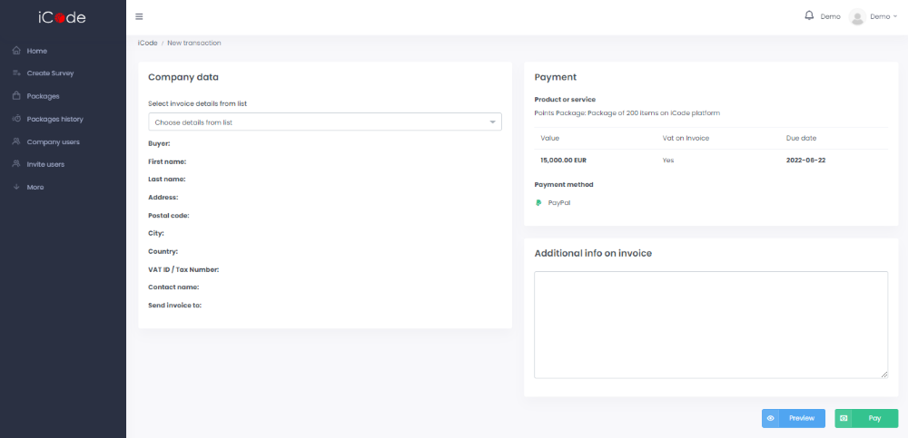 When you enter all data click “pay” to be redirected to PayPal. Please enter all necessary data and pay for the survey. If you prefer, you may also pay with your credit card.
