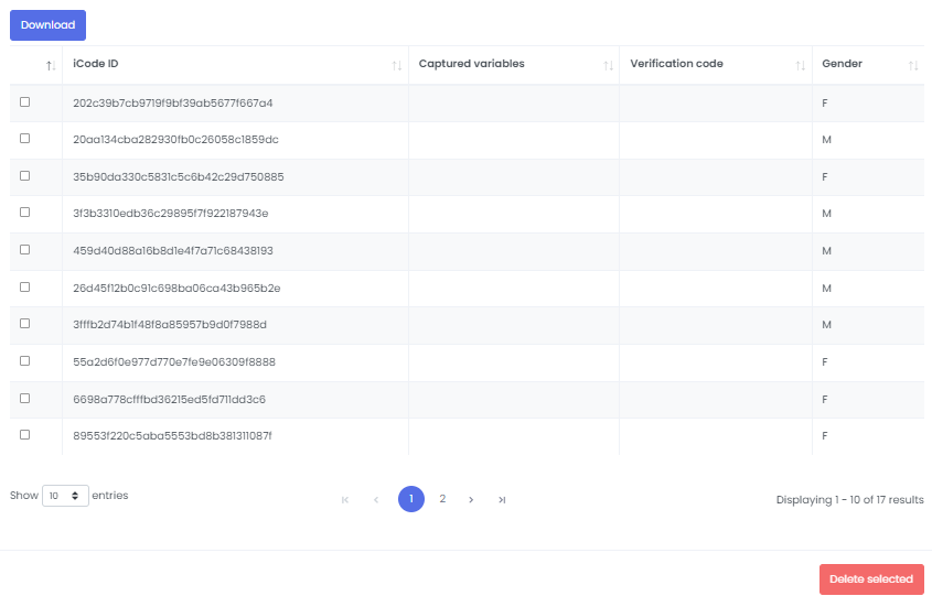 If you need to download data regarding your sample or closer analyse or eliminate from your sample data obtained from particular respondents, click on a Manage Data button.